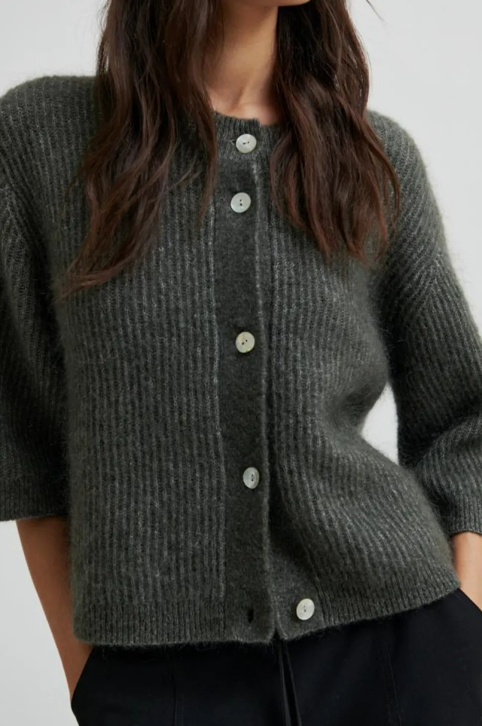 Andrea Knit Rib Cardigan fra Second Female er den perfekte tilføjelse til enhver garderobe, der ønsker at kombinere stil med komfort. Denne strikcardigan er designet med en elegant ribstruktur, der tilføjer en subtil tekstur til dit look. 2/4-ærmer giver et moderne touch, der gør den ideel til lag-på-lag styling. Cardiganen er udstyret med en praktisk knaplukning, der gør det nemt at tage den af og på, mens ribkanten sikrer en god pasform over tid. Med dens sænkede skuldersøm og afslappede pasform kan du være sikker på, at komforten er i top, uden at gå på kompromis med stilen. Materialeblandingen med uld og mohair tilføjer en ekstra dimension af blødhed og varme, perfekt til kølige dage. Andrea Knit Rib Cardigan er det oplagte valg til både afslappede og mere formelle anledninger, hvor du ønsker at fremstå både sofistikeret og behagelig.
