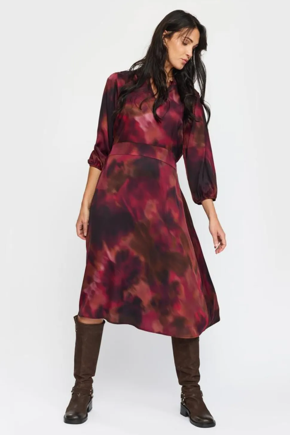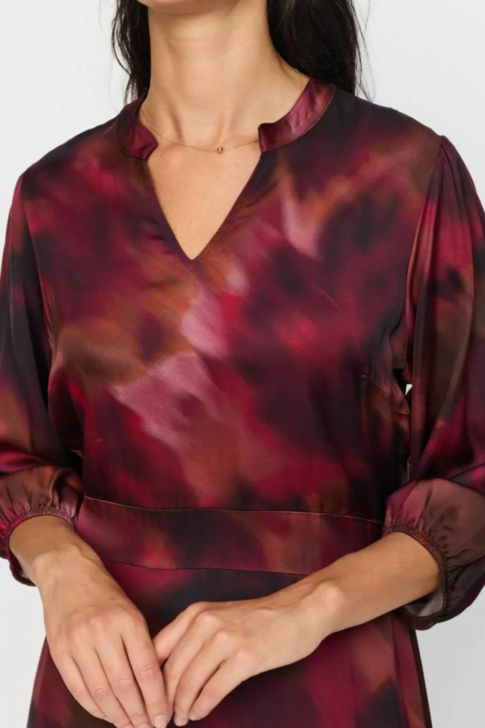 Annika Kjole fra 2-Biz er det perfekte valg for dig, der søger en stilfuld og komfortabel lang kjole til enhver lejlighed. Denne smukke kjole har 3/4-ærmer, der giver et sofistikeret udtryk, mens V-halsen tilføjer et feminint touch til designet. Den midi-længde skaber en elegant silhuet, der hverken er for lang eller for kort, og giver dig mulighed for at bære kjolen både til daglig brug og ved festlige anledninger.Med et smockstykke på ryggen sikrer Annika Kjole en fleksibel pasform, som tilpasser sig din kropsform og giver optimal komfort. Den almindelige pasform gør kjolen ideel til både afslappede og mere formelle sammenkomster. Uanset om du kombinerer den med flade sandaler til en dag på kontoret eller med høje hæle til en aften ude, vil denne kjole fra 2-Biz hurtigt blive en favorit i din garderobe. Nyd det stilfulde design og den alsidige anvendelighed af Annika Kjole.