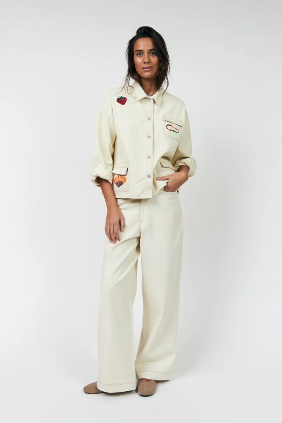 AprilLL Jakken fra Lollys Laundry er en stilfuld tilføjelse til enhver garderobe. Denne jakke kombinerer funktionalitet med et moderne design, der passer perfekt til både hverdagsbrug og specielle anledninger. Med lange ærmer og en almindelig krave sikrer jakken en klassisk silhuet, som komplementerer mange forskellige outfits. Jakken er udstyret med en praktisk knaplukning, der gør den nem at tage af og på, samtidig med at den holder på varmen, når temperaturen falder. Frontlommerne tilføjer både æstetisk værdi og funktionalitet, da de giver nem adgang til småting, du har brug for i løbet af dagen. Detaljer som broderede motiver og kontrastsyninger giver jakken et unikt og iøjnefaldende udtryk, der skiller sig ud fra mere traditionelle jakker. Desuden er jakken designet med en afslappet pasform, der sikrer komfort og bevægelsesfrihed. Dette gør den ideel til både afslappede og mere formelle sammenhænge. AprilLL Jakken fra Lollys Laundry er et must-have for dem, der ønsker at tilføje et strejf af elegance og personlighed til deres look.
