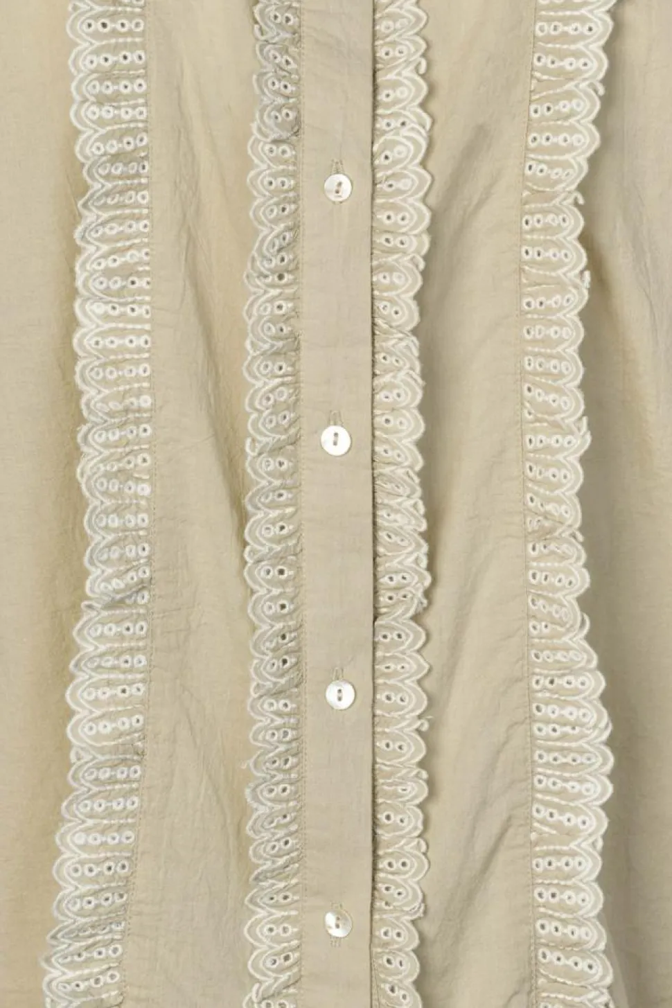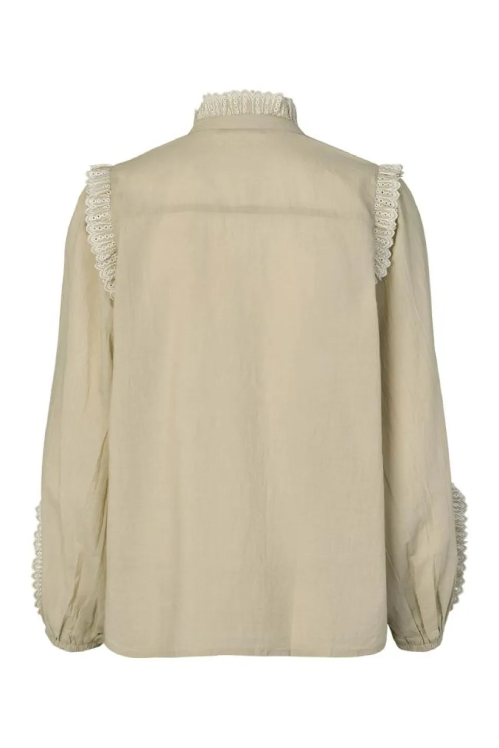 - Rund hals med flæsekrave