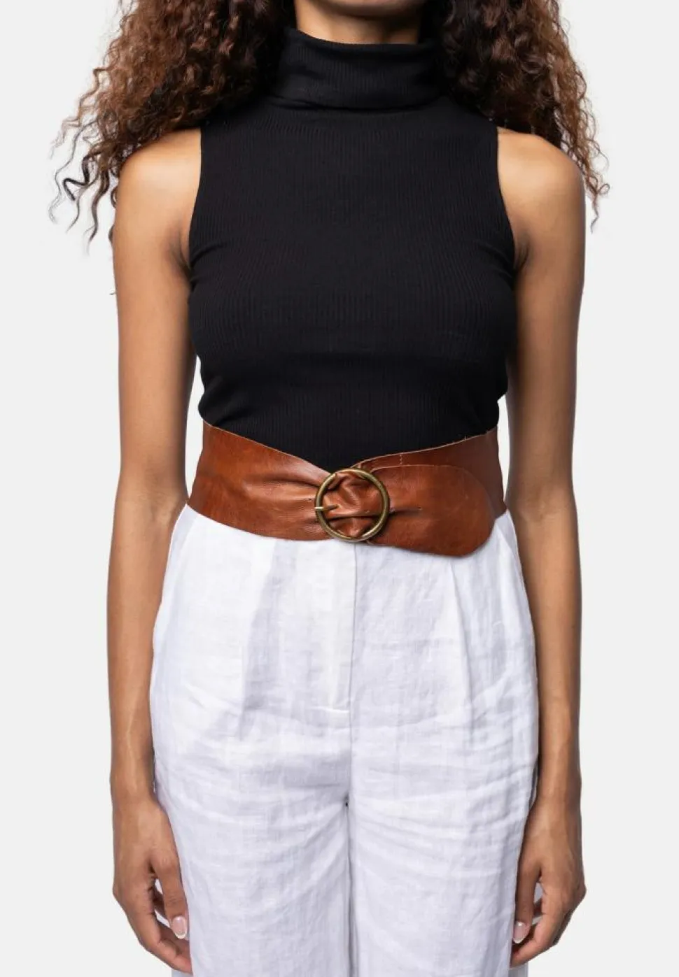 Re:Designed præsenterer et stilfuldt bælte, der er det perfekte tilbehør til at fuldende dit outfit. Dette bælte fra Re:Designed er designet med fokus på tidløs elegance og funktionalitet. Med et smukt guldfarvet rundt spænde tilføjer det en sofistikeret detalje, der skiller sig ud og giver et eksklusivt look.Bæltet fås i flere størrelser, hvilket gør det muligt at finde den perfekte pasform til netop dig. Det er justerbart, så du kan tilpasse det efter dine præferencer og behov, hvilket sikrer en komfortabel og sikker pasform hver gang. Dette bælte kombinerer både stil og funktionalitet, hvilket gør det til et must-have i enhver garderobe. Uanset om det bruges til hverdag eller særlige lejligheder, er dette bælte en alsidig accessory, der kan løfte ethvert outfit.