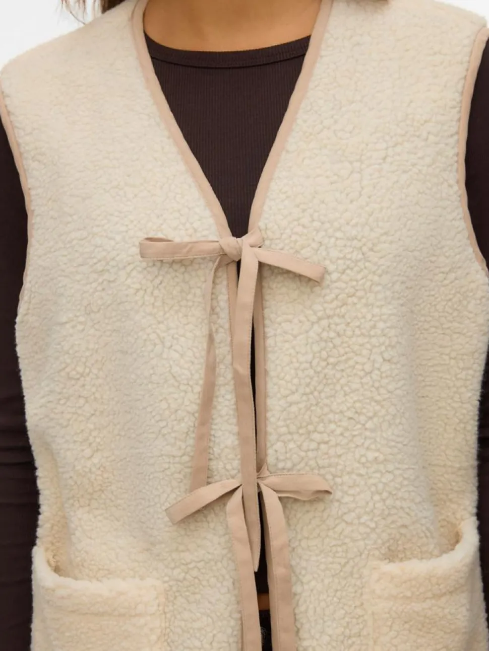 Denne Cleo vest fra Vero Moda er en stilfuld tilføjelse til din garderobe, hvor den kombinerer elegance med funktionalitet. Vesten er designet med en lukning, der har et smukt bindebånd, som giver mulighed for at justere pasformen efter præference. Den plysset overflade tilfører en blød tekstur, der både er behagelig og trendy, hvilket gør den ideel til at pifte ethvert outfit op.Cleo vesten har praktiske forlommer, som giver dig mulighed for nem opbevaring af småting, mens den ærmeløse konstruktion giver frihed til at bevæge sig ubesværet. V-udskæringen tilføjer et klassisk touch, der nemt kan kombineres med forskellige toppe og skjorter. Lavet af polyester, er denne vest både holdbar og let at vedligeholde, hvilket sikrer, at du kan nyde den sæson efter sæson. Perfekt til både hverdagsbrug og særlige lejligheder, er denne vest fra Vero Moda et alsidigt og stilfuldt valg.