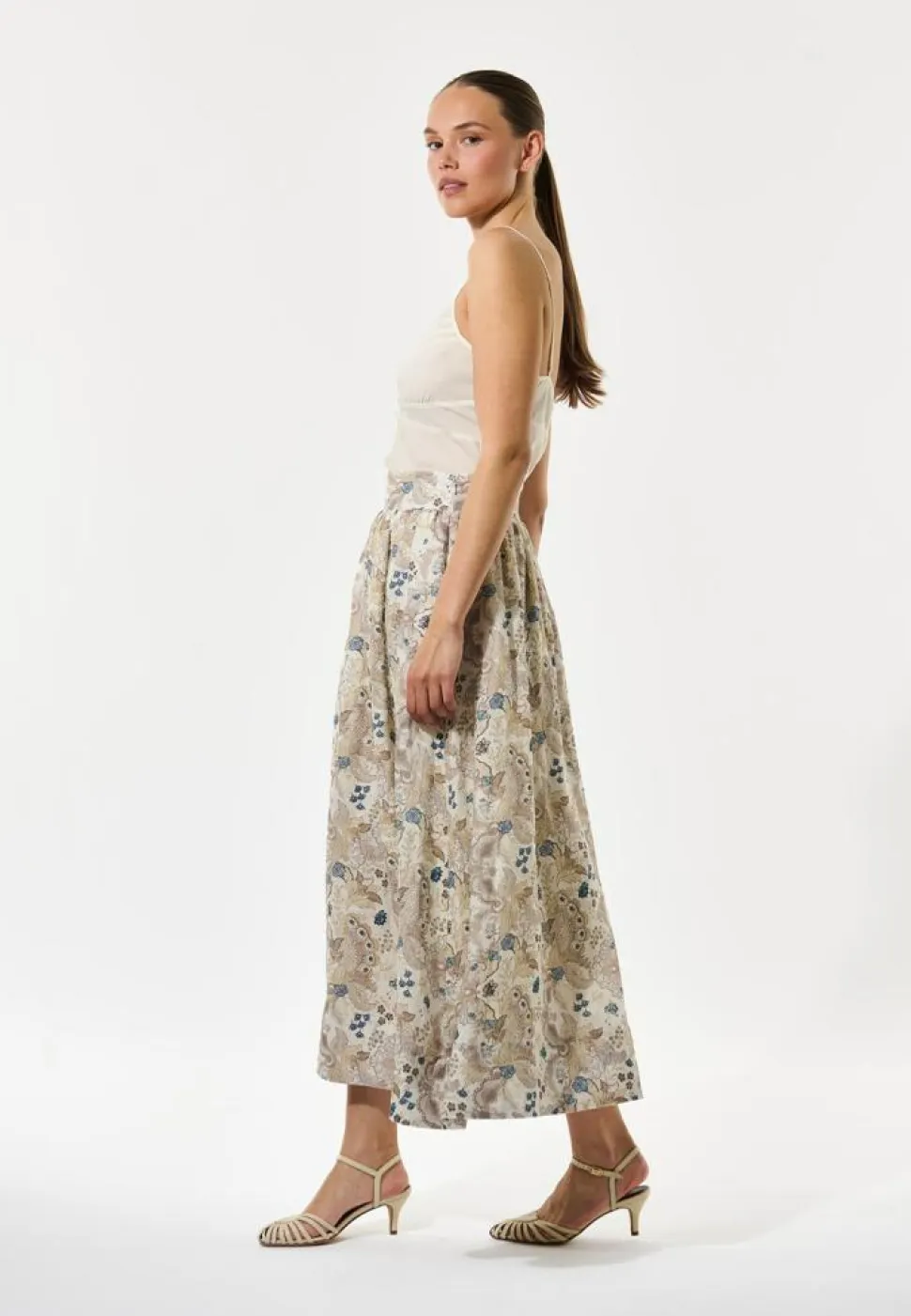 EddaDEA Nederdelen fra Dea Kudibal er en elegant tilføjelse til enhver garderobe. Denne smukke nederdel har en maxi-længde, der tilføjer et strejf af raffinement og klasse til dit outfit. Det højtaljede design fremhæver din silhuet og giver en flatterende pasform, mens lynlåslukningen i siden sikrer nem på- og afklædning. Nederdelen er udstyret med praktiske sidelommer, der tilføjer både funktionalitet og stil. Det delikate blomsterprint giver en frisk og feminin følelse, perfekt til både hverdagsbrug og særlige lejligheder. Uanset om du styler den med en enkel top til en afslappet dag eller en elegant bluse til aftenbrug, vil EddaDEA Nederdelen fra Dea Kudibal uden tvivl tilføje et strejf af elegance til dit look.