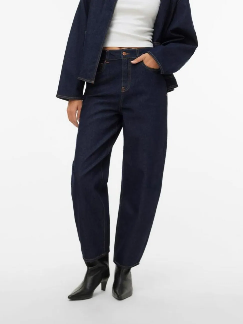 Eveline Barrel Jeans fra AWARE er det perfekte valg for dig, der søger en kombination af stil og komfort. Disse jeans er designet med en moderne barrel leg, der giver et afslappet og trendy udtryk. Med en mid waist pasform, sikrer de en behagelig og flatterende silhuet. Jeansene er udstyret med en praktisk knap- og lynlåslukning, så de er nemme at tage af og på. Bæltestropperne giver dig mulighed for at tilføje et bælte efter eget valg, hvilket kan give et personligt touch til dit look. Lommerne er ikke kun praktiske, men også stilfuldt designet med kontrastsyninger, der tilføjer et subtilt, men markant design element til jeansene. Disse detaljer gør Eveline Barrel Jeans fra AWARE til et must-have i enhver garderobe, idet de tilbyder både funktionalitet og et tidløst design.