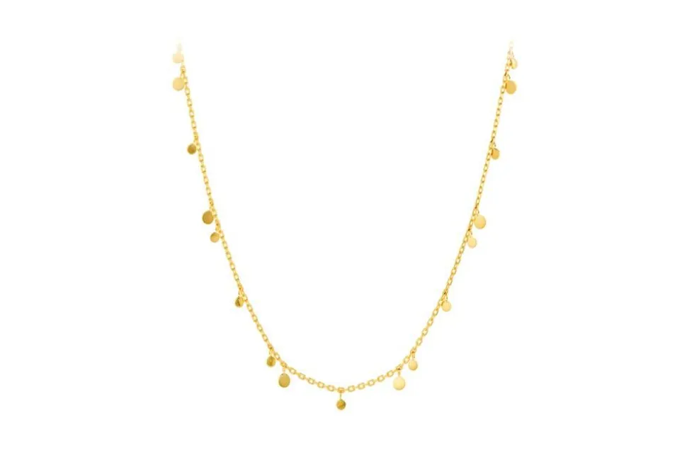 Glow Halskæden fra Pernille Corydon er et udsøgt eksempel på elegant smykkekunst, der kombinerer enkelhed med raffineret detalje. Denne halskæde er fremstillet af forgyldt sterlingsølv, hvilket giver den et luksuriøst udtryk, der komplementerer enhver stil. Halskæden er dekoreret med små runde plader, som tilføjer en subtil, men iøjnefaldende detalje, der fanger lyset smukt og giver et glitrende look.Med en justerbar længde på 40-46 cm, kan denne halskæde tilpasses perfekt til din ønskede stil, uanset om du foretrækker den tættere på halsen eller lidt længere for et mere afslappet udtryk. Glow Halskæden er ideel til både hverdagsbrug og særlige anledninger, hvor den elegant kan fremhæve din naturlige skønhed. Uanset om du bærer den alene eller i kombination med andre smykker, vil denne halskæde fra Pernille Corydon uden tvivl tilføje et strejf af glamour til dit look.