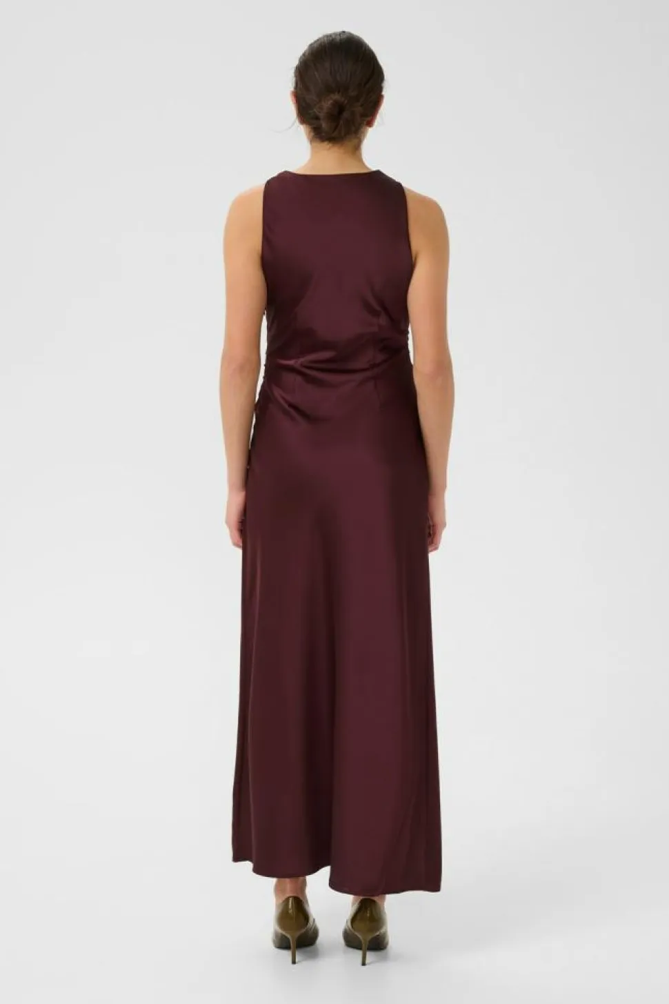GZrue Kjole fra Gestuz er den perfekte kombination af elegance og moderne design til enhver særlig lejlighed. Kjolen er skabt i en sofistikeret maxi-længde, der tilføjer et storslået udtryk til din garderobe. Med sit ærmeløse design og en rund hals, fremhæver kjolen dine skuldre og hals på en subtil, men stilfuld måde. Et af de mest iøjnefaldende træk ved denne kjole er den høje slids foran giver dig mulighed for at bevæge dig frit og komfortabelt. Rynkeeffekten i taljen fremhæver din figur og giver et flatterende look, mens den skjulte lynlåslukning i siden sikrer en glat og jævn pasform. Det luksuriøse satinlook på stoffet tilføjer en skinnende finish, der fanger lyset smukt og giver et sofistikeret udtryk. GZrue Kjole fra Gestuz er et uundværligt stykke tøj for dem, der ønsker at kombinere klassisk stil med moderne detaljer.