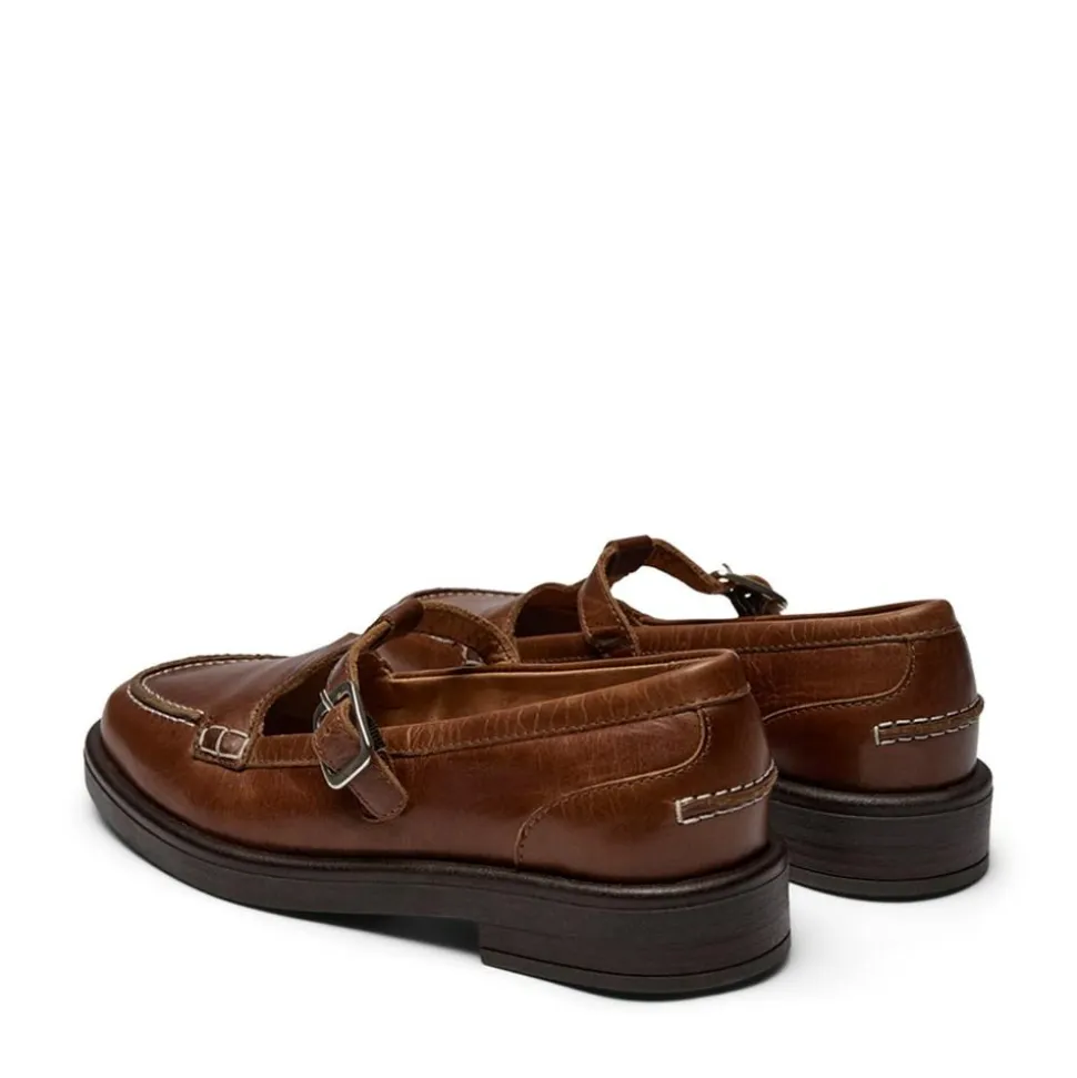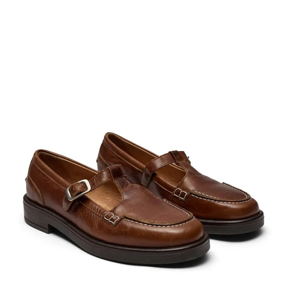 Opdag elegancen i Jamilla skoene fra Pavement, som tilbyder en stilfuld og komfortabel oplevelse til enhver lejlighed. Disse flade sko er designet med en rund snude, der giver et klassisk look og sikrer, at dine fødder har god plads og komfort hele dagen. En spændelukning tilbyder både et praktisk og æstetisk element, der gør det nemt at tage skoene af og på, samtidig med at de sidder sikkert på foden.Skoene er udstyret med en lav blokhæl, som giver et let løft uden at gå på kompromis med komforten, hvilket gør dem ideelle til både hverdag og fest. De fine detaljer med hvide syninger tilføjer et strejf af raffinement til designet og fremhæver skoenes håndværksmæssige kvalitet. Fremstillet i læder, er Jamilla skoene både slidstærke og behagelige at have på. Perfekte til dem, der ønsker at kombinere et stilfuldt udseende med praktisk anvendelighed i deres skosamling.