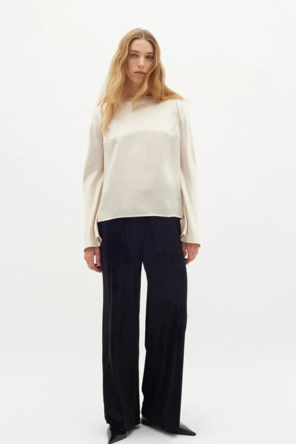 Fayla Drapy Satin Balloon Bukser, Black, 38