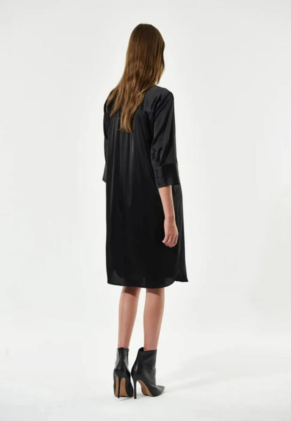 Kamillesdea kjolen fra Dea Kudibal er en elegant og alsidig kjole, der passer perfekt til både hverdag og festlige lejligheder. Kjolen er lavet af silkemateriale, hvilket tilføjer en luksuriøs følelse og et smukt fald til kjolen. Med en V-udskæring, giver den et feminint og sofistikeret look, der fremhæver halsudskæringen på en elegant måde. De 3/4-ærmer gør kjolen passende til både kølige og varmere dage. Kjolen har en knælang længde, der giver en klassisk silhuet. For et ekstra touch af elegance er kjolen udstyret med manchetter med knaplukning, der giver mulighed for at justere ærmelængden efter behov. Den opretstående krave tilføjer et moderne twist til det tidløse design, og den almindelige pasform sikrer komfort hele dagen. Kamillesdea kjolen er det perfekte valg for dig, der ønsker en stilfuld og tidløs kjole, der kan bruges igen og igen.