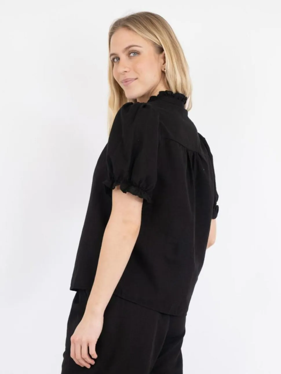 Fayla Drapy Satin Balloon Bukser, Black, 38