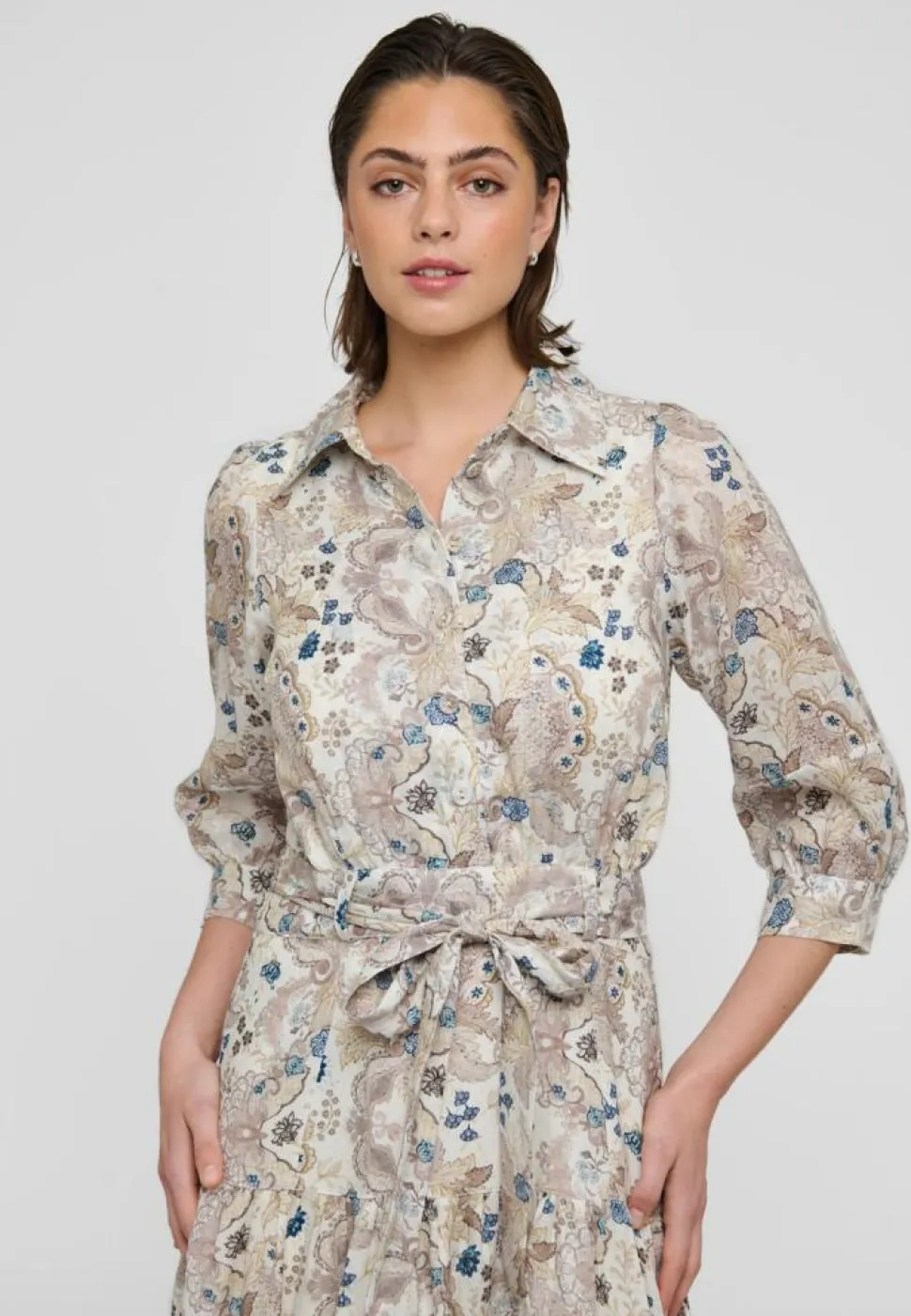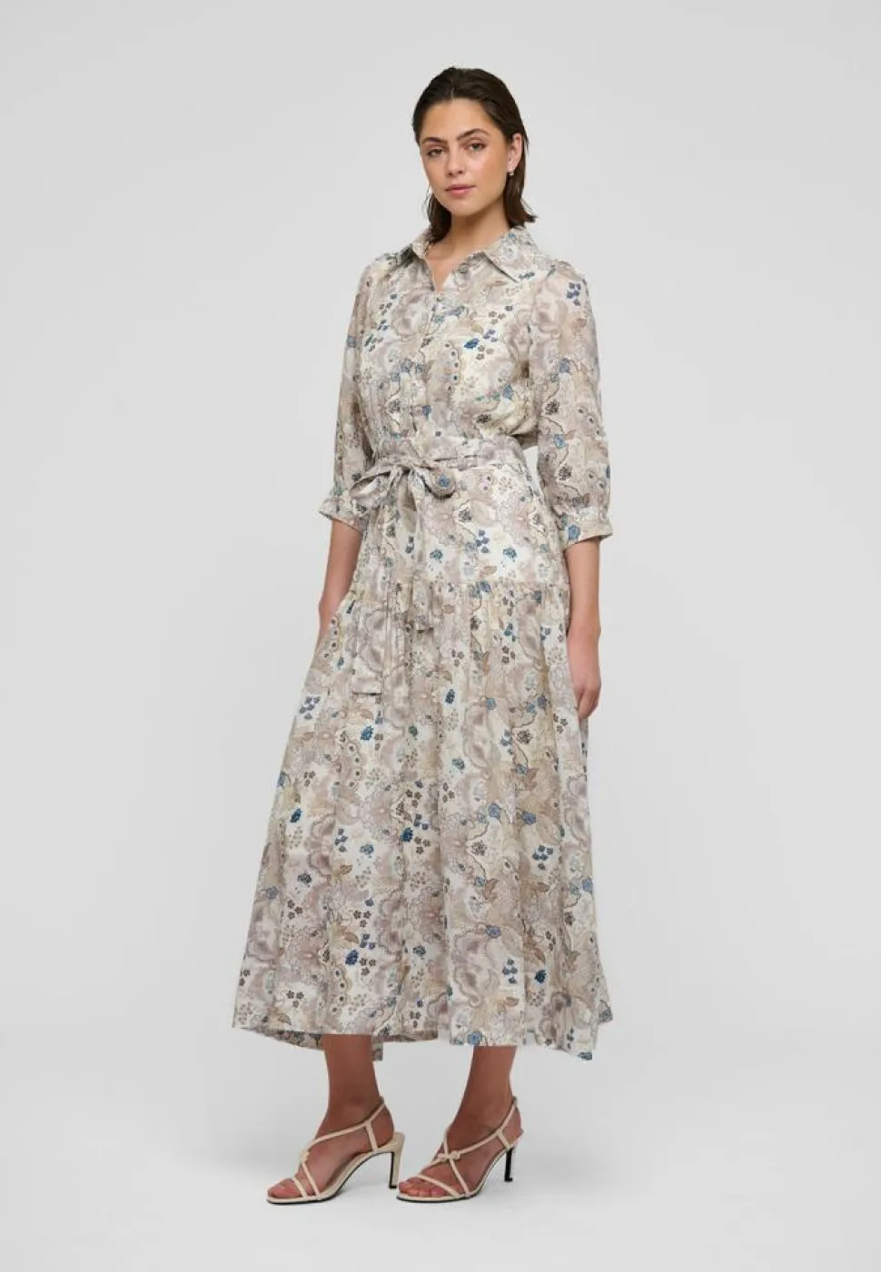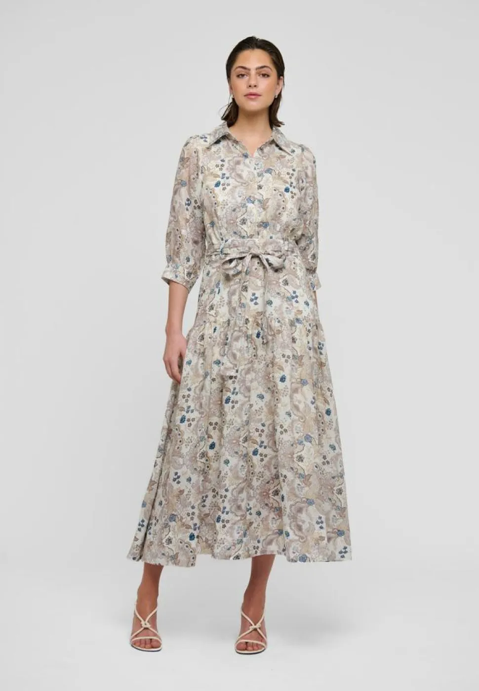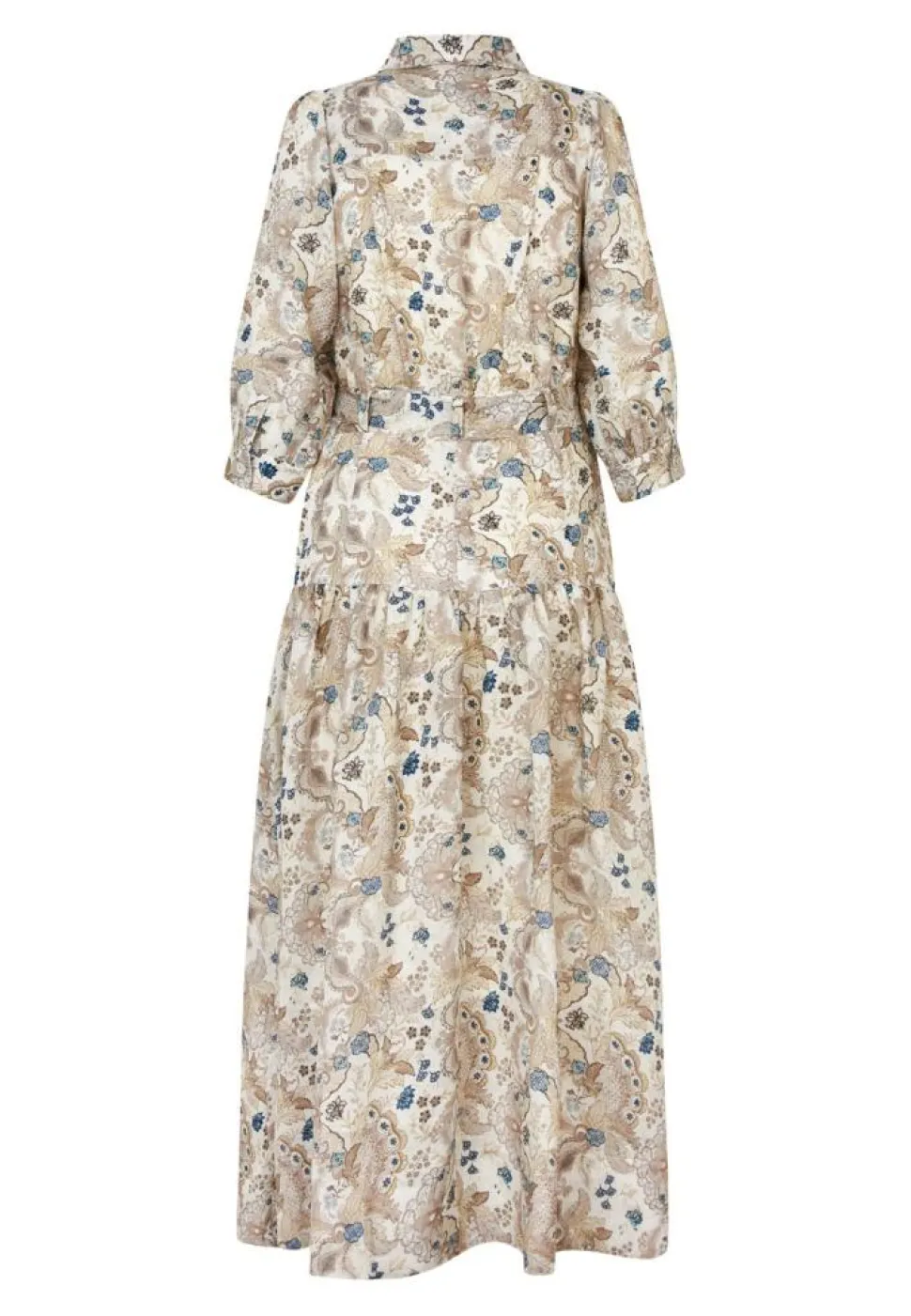 Denne PalmaDEA kjole fra Dea Kudibal er det perfekte valg for dig, der søger en stilfuld og alsidig lang kjole. Kjolen kommer med smukke 3/4-ærmer, der giver et elegant touch og gør den velegnet til både dag- og aftenbrug. Skjortekraven tilføjer en klassisk fornemmelse, mens knaplukningen ved halsen giver mulighed for at justere åbningen efter dit ønske og komfort. Med et bindebånd i taljen kan du let fremhæve din figur og skabe en feminin silhuet. Kjolen præsenterer et flot print, der tilfører et livligt og moderne udtryk, hvilket gør den til et iøjnefaldende stykke tøj. Den almindelige pasform sikrer en behagelig oplevelse, samtidig med at den tilbyder nok bevægelsesfrihed, så du kan føle dig godt tilpas hele dagen. PalmaDEA kjolen er ideel til både casual og formelle lejligheder.
