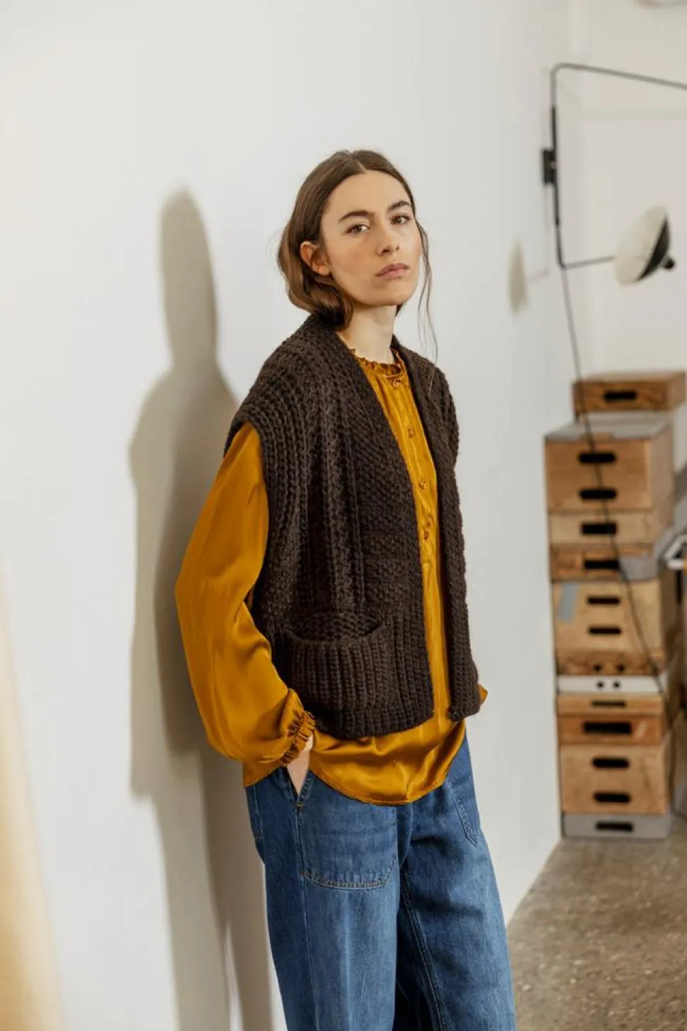Susie Strikvest fra Project AJ117 er den perfekte tilføjelse til din garderobe, når du ønsker et stilfuldt og hyggeligt look. Denne strikvest er designet med en åben front, der gør den let at tage på og giver et casual udtryk. Den chunky strik tilføjer tekstur og varme, hvilket gør den velegnet til forskellige sæsoner. Vesten er udstyret med praktiske lommer foran, der både er funktionelle og giver et moderne touch. Med sin afslappede pasform tilbyder Susie Strikvest komfort uden at gå på kompromis med stil. Fremstillet i en lækker uldblanding, sikrer denne vest både blødhed og holdbarhed, hvilket gør den til et must-have for enhver modebevidst kvinde. Uanset om du bruger den over en skjorte eller som en del af et lagdelt look, vil Susie Strikvest fra Project AJ117 med sikkerhed give dit outfit et løft.