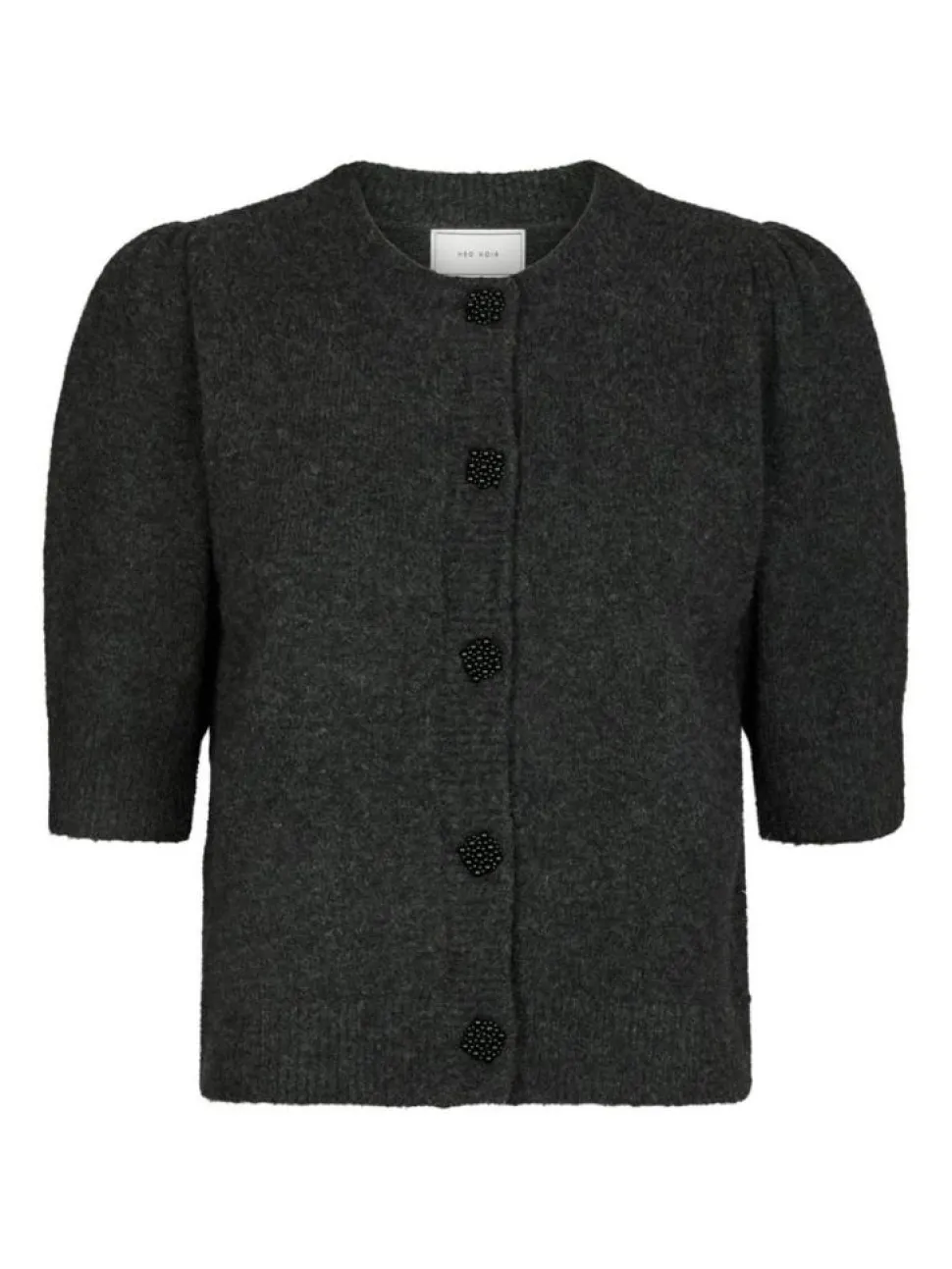 Trudy Deco Knit Cardigan fra Neo Noir er en stilfuld tilføjelse til din garderobe, der kombinerer elegance og komfort på fineste vis. Denne cardigan er designet med korte pufærmer, som tilføjer et feminint touch, samtidig med at de giver en moderne silhuet. Med sin runde halsudskæring og ribkant, tilbyder cardiganen en klassisk stil, der passer til enhver lejlighed. Denne cardigan har en almindelig pasform, hvilket gør den behagelig at have på hele dagen. En af de mest bemærkelsesværdige detaljer er de dekorative knapper med perler, der giver et strejf af glamour og sofistikation til designet. Perfekt til både hverdag og mere formelle begivenheder, kan denne cardigan nemt styles med både jeans og nederdele.