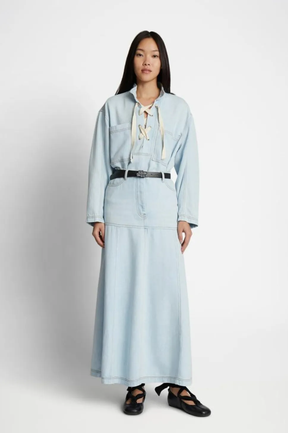 - Lang denimnederdel