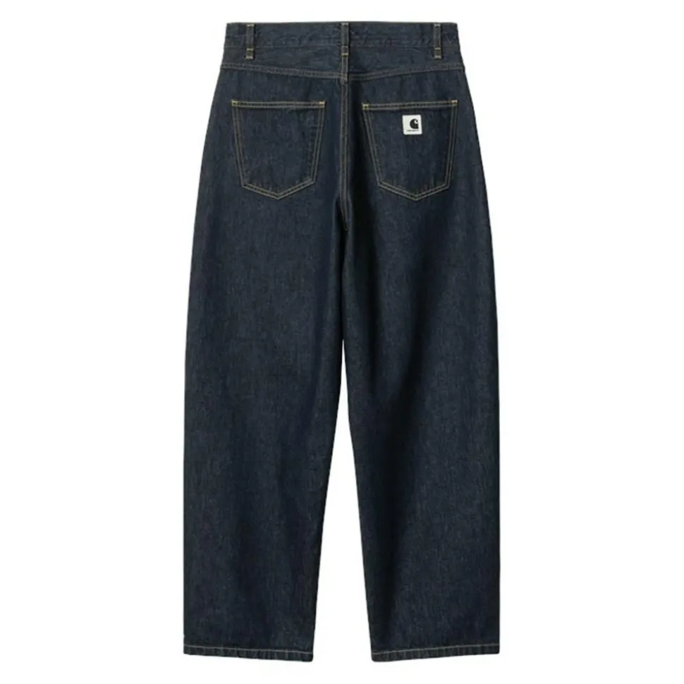 Disse denimbukser er designet til at give dig et afslappet look med deres loose fit, samtidig med at de sikrer en behagelig pasform. Med en mid waist talje kan du være sikker på en flatterende silhuet, der hverken er for høj eller for lav. Bukserne er udstyret med fem praktiske lommer, hvilket giver dig rigelig opbevaringsplads til dine daglige nødvendigheder. Den klassiske lukning med knap og lynlås sikrer en sikker og nem lukning, mens bæltestropperne gør det muligt at tilføje et bælte for ekstra stil eller funktionalitet. Som en fin detalje prydes den ene baglomme med Carhartt-logoet, der subtilt fremhæver mærkets kvalitet og tidløse design. Disse bukser er det ideelle valg for dem, der søger både funktionalitet og mode.