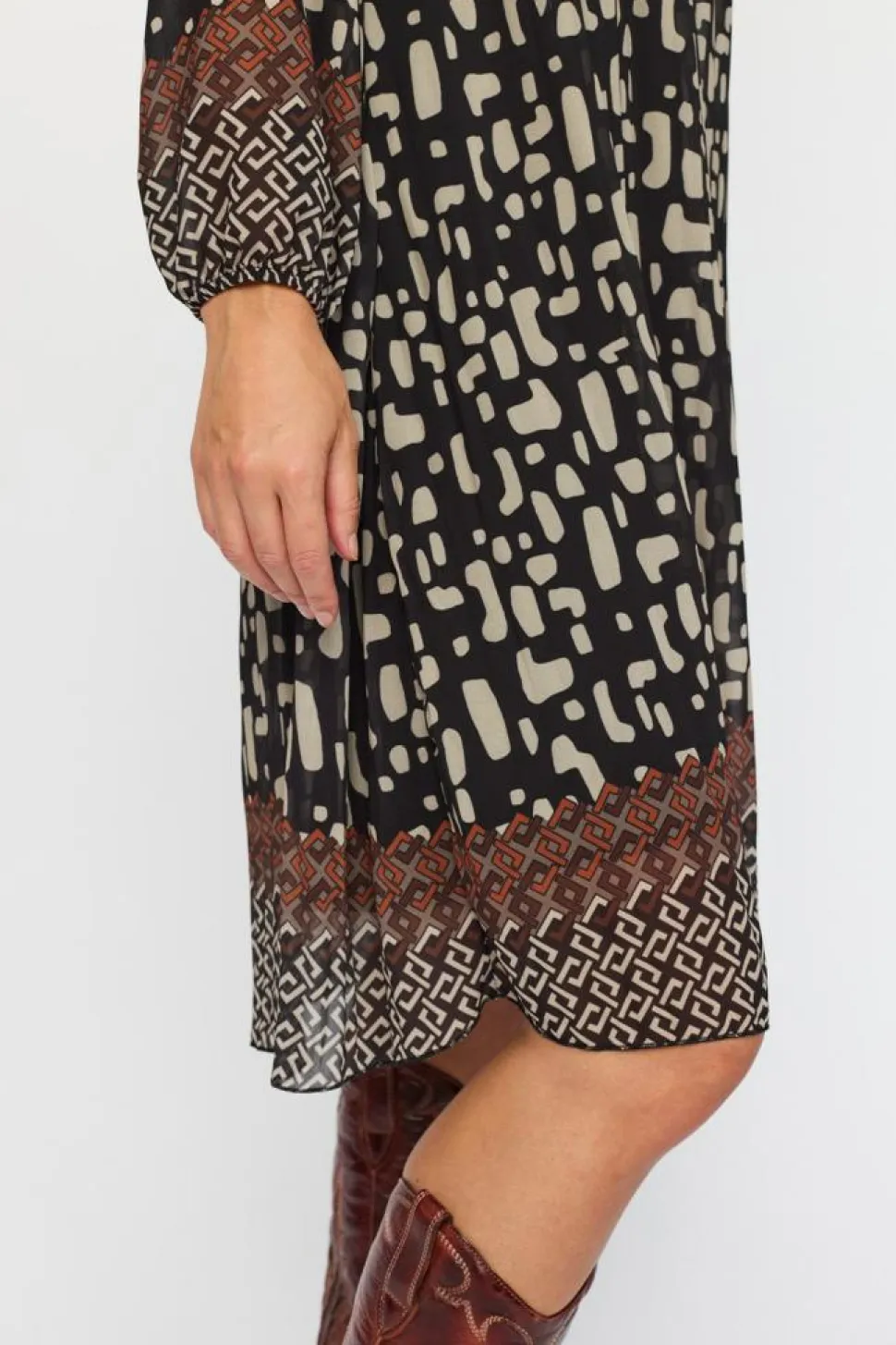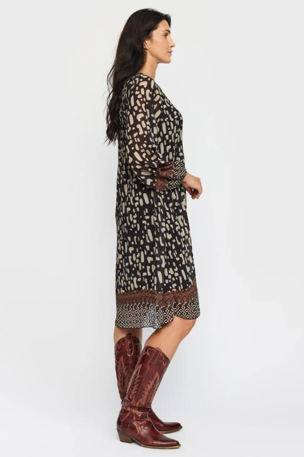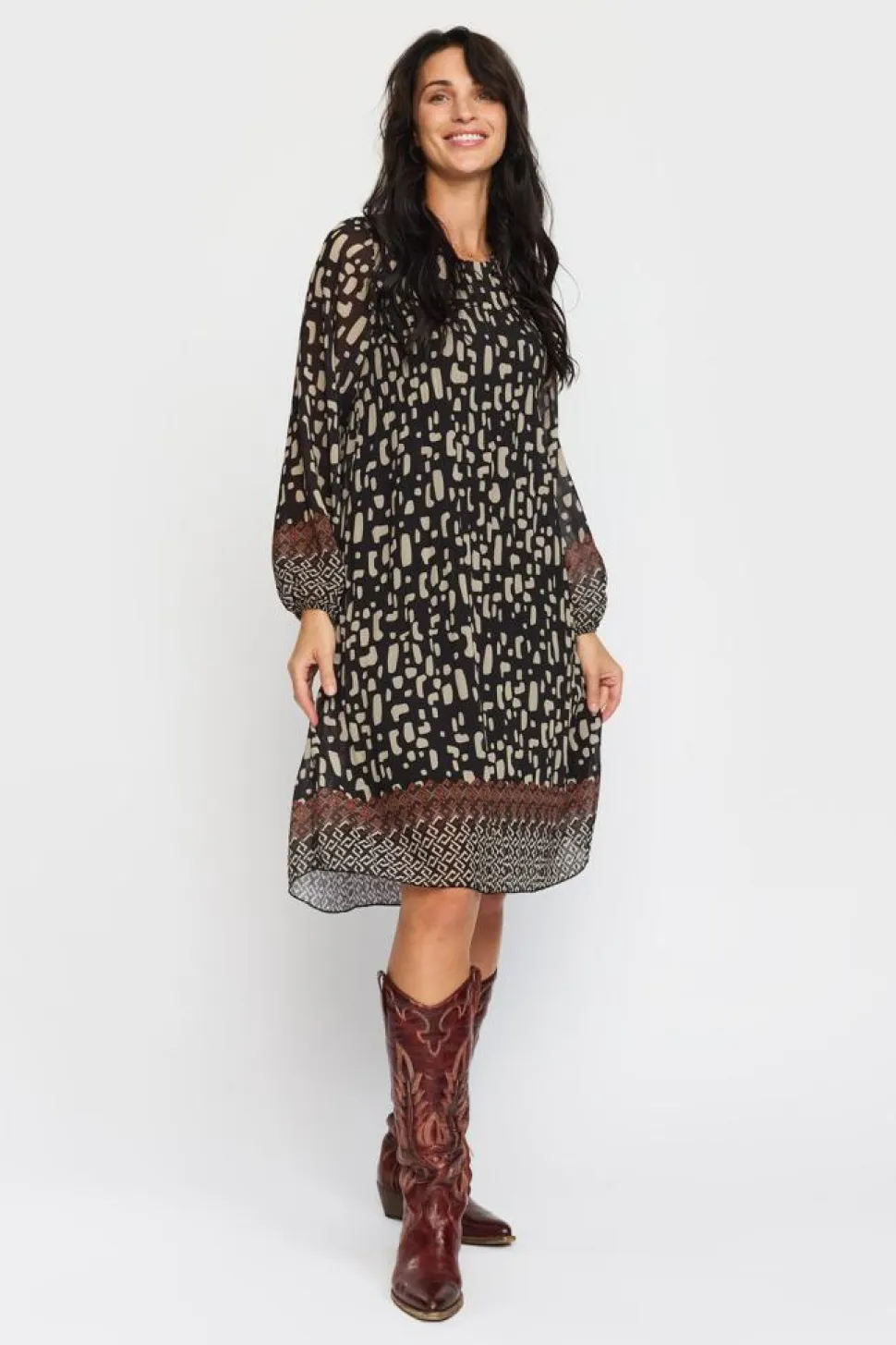 Oplev den elegante Alberte Kjole fra 2-Biz, der kombinerer stil og komfort i et fantastisk langærmet design. Denne kjole er skabt til dem, der ønsker en afslappet og alligevel sofistikeret stil med sin runde halsudskæring og attraktive print, der tilføjer et strejf af personlighed til enhver garderobe. Kjolens midi-længde giver en alsidig pasform, perfekt til både hverdag og festlige lejligheder. Den løse pasform sikrer komfort hele dagen. Perfekt til at skille sig ud med elegance, uden at gå på kompromis med komforten.