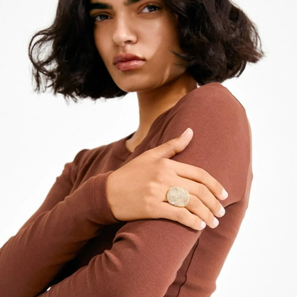Ember Ring fra Pilgrim er en elegant og tidløs ring, der passer til enhver lejlighed. Denne smukke ring er fremstillet af guldbelagt messing, hvilket giver den et luksuriøst og stilfuldt udseende. Pilgrim har med sin sans for detaljer skabt en ring, der skiller sig ud med sine hvide sten, som er delikat placeret for at give ringen et ekstra strejf af elegance og glamour.Ringens firkantede form giver et moderne twist til det klassiske design, hvilket gør den til et perfekt valg for dem, der ønsker at kombinere tradition med nutidige trends. Ember Ring er også praktisk i sin justerbare størrelse, hvilket sikrer en komfortabel pasform til forskellige fingerstørrelser. Dette gør den ideel som gave, da den let kan tilpasses til modtagerens behov. Med Ember Ring fra Pilgrim kan du tilføje et sofistikeret element til din smykkesamling.