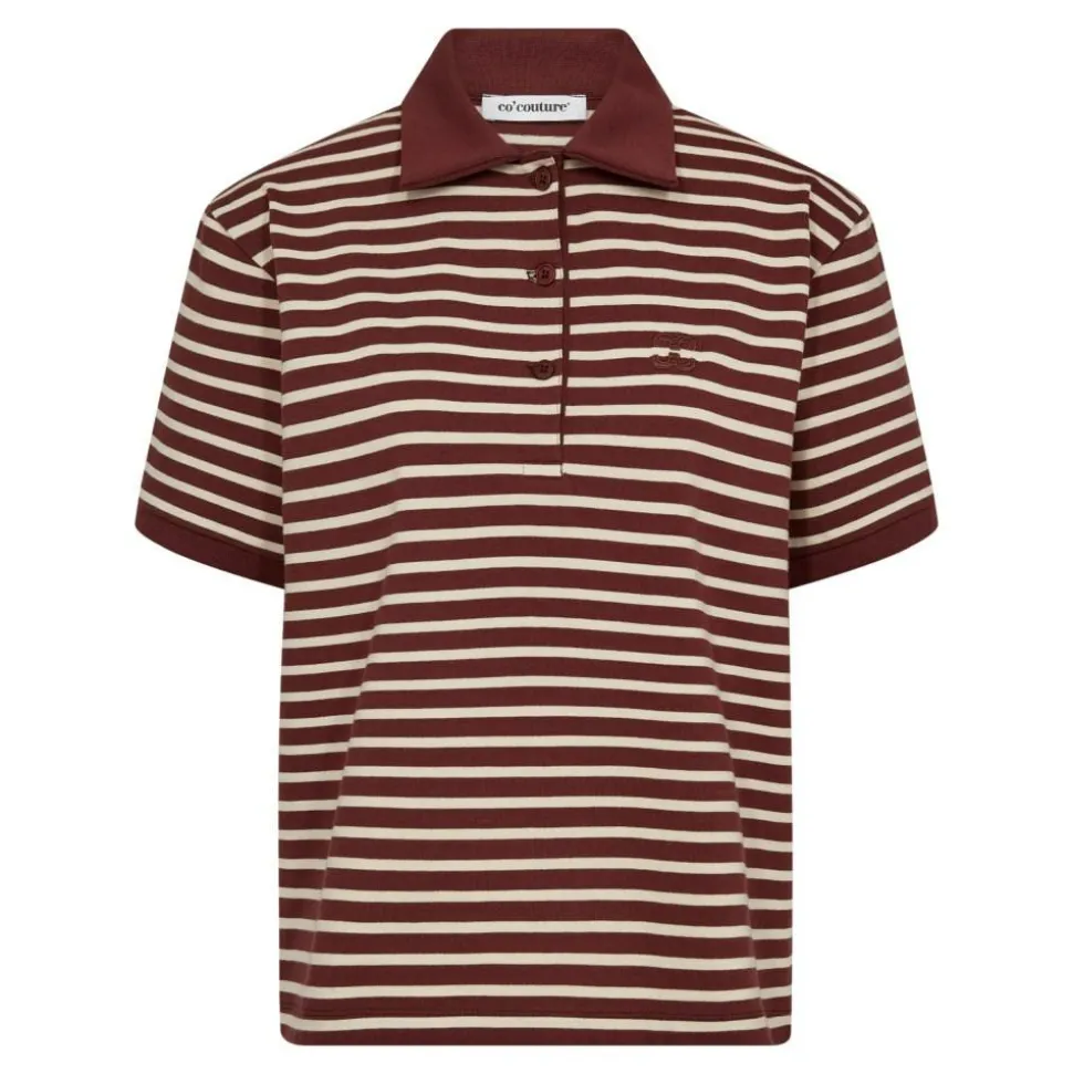 Opdag den stilfulde HayesCC Polo T-shirt fra Co’Couture, der kombinerer klassisk design med moderne detaljer. Denne kortærmede T-shirt er perfekt til dem, der sætter pris på både komfort og stil. Med sine karakteristiske striber tilfører den et dynamisk element til din garderobe, mens knaplukningen ved halsen giver mulighed for at justere udseendet efter lejligheden. T-shirten er udstyret med en tidløs polokrave, der fremhæver det klassiske polo-look. Det broderede logo på brystet tilføjer et subtilt men elegant touch. Med en løs pasform sikrer denne polo optimal komfort og bevægelsesfrihed, hvilket gør den ideel til både afslappede og mere formelle anledninger. Uanset om den bæres alene eller under en jakke, er HayesCC Polo T-shirten et alsidigt valg, der let kan styles til enhver lejlighed.
