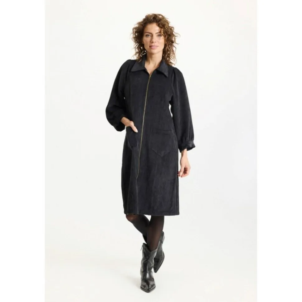 Ivy Kjole fra IN FRONT er en stilfuld fløjlskjole, der perfekt kombinerer komfort og elegance. Denne langærmede kjole er designet med en almindelig krave, der tilføjer et klassisk touch til dens moderne look. Med en praktisk lynlåslukning foran er den let at tage af og på, hvilket gør den ideel til både hverdag og festlige lejligheder. Kjolens midi-længde og almindelige pasform sikrer en flatterende silhuet. De diskrete lommer foran tilføjer ikke kun et funktionelt element, men også en afslappet charme. Uanset om du klæder dig på til arbejde eller en aften i byen, vil Ivy Kjolen fra IN FRONT være et alsidigt valg, der kan styles op eller ned efter behov. Fløjlens bløde tekstur giver et luksuriøst udtryk, mens kjolens enkle design gør den let at kombinere med forskellige accessories og sko.