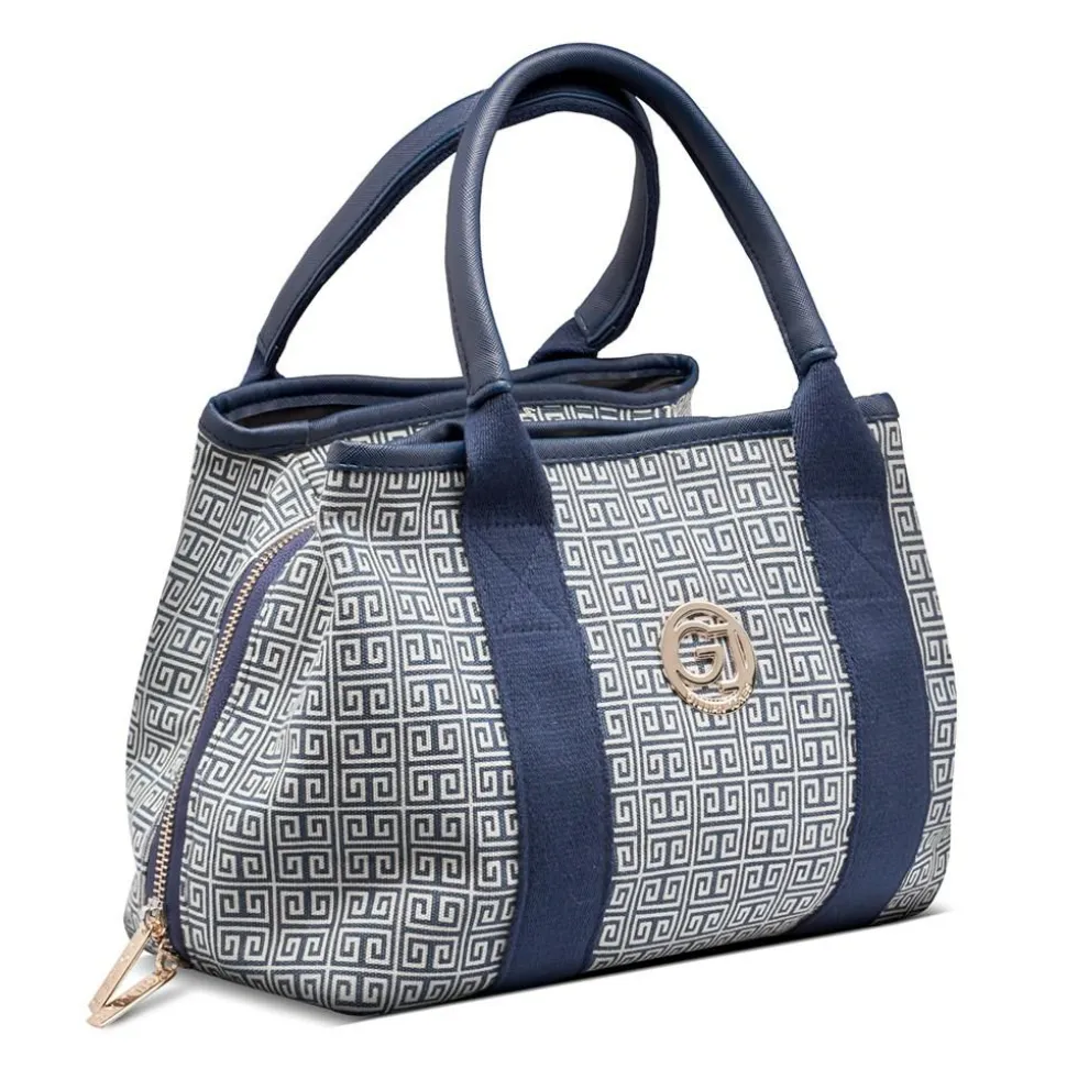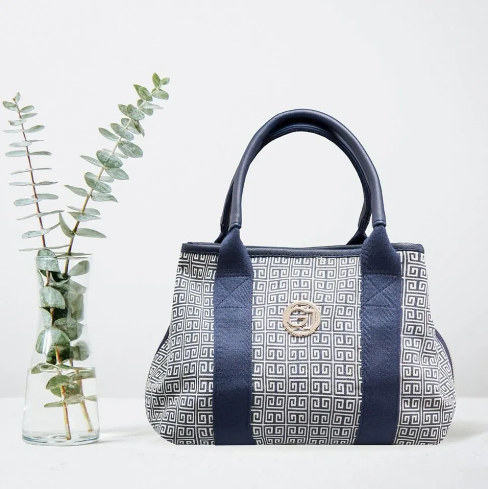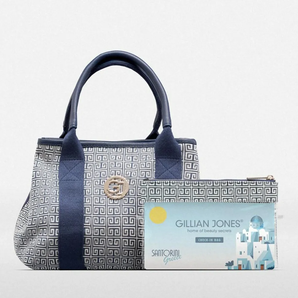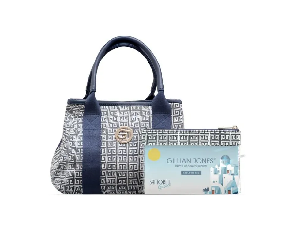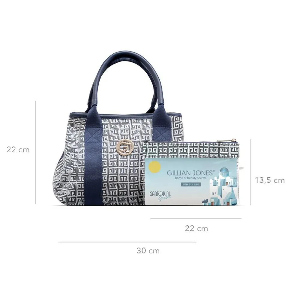 Mary toilettaske i Santorini print, med GJ guld logo på fronten, er fremstillet i 100% genanvendt plastik . Tasken er rummelig opdelt med 3 rum: To udvendige rum der lukkes med magnet lås, samt et rum i midten med lynlås, der er indrettet med 4 net lommer der gør det muligt at se hvad lommerne gemmer. Lynlåsvedhænget er aflangt og med et godt greb. 2 korte hanke gør at du kan hænge toilettasken på en krog i f.eks. hotel badeværelser.