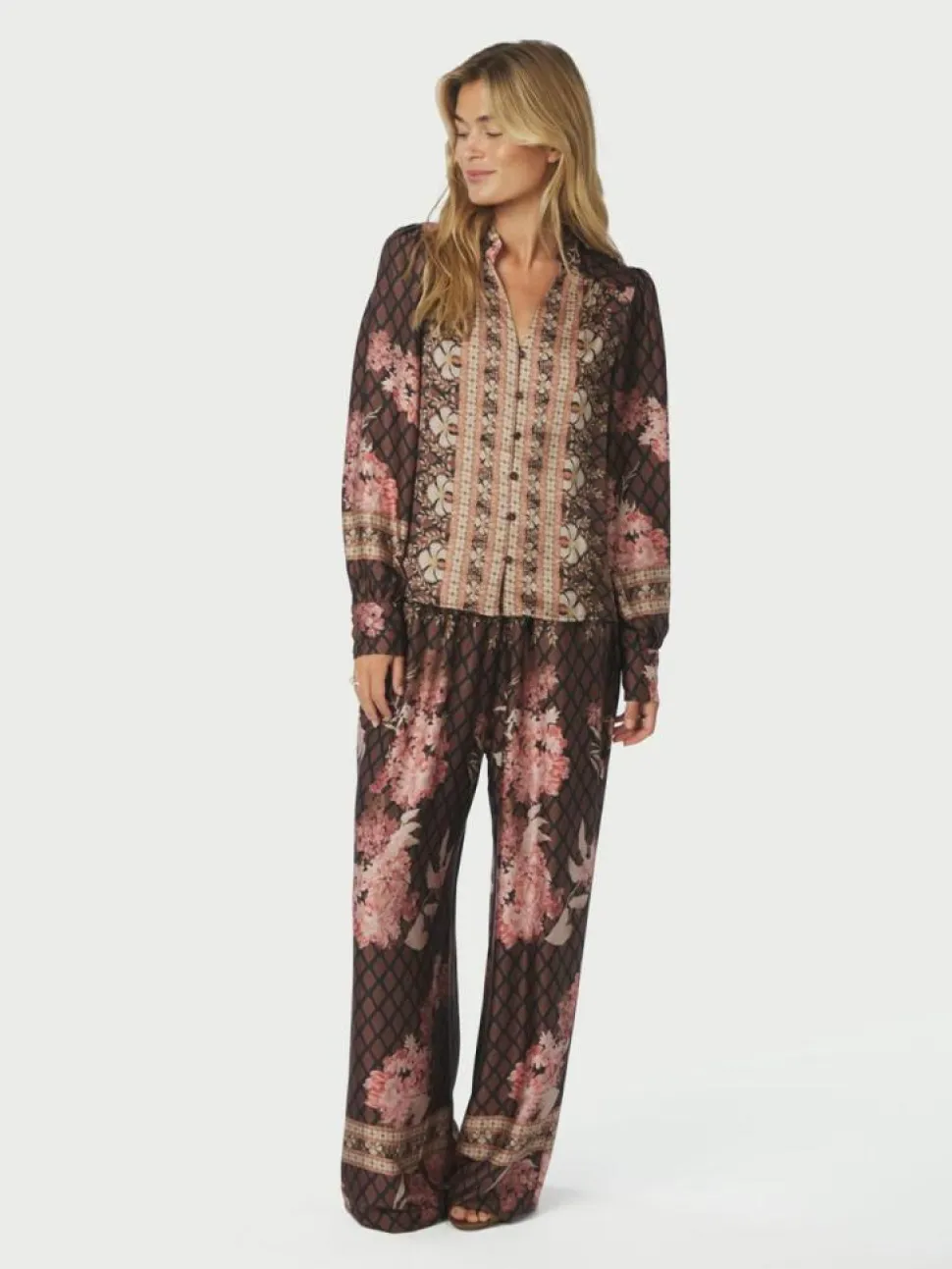 Massima Botanical Border Bluse fra Neo Noir er en delikat og stilfuld tilføjelse til din garderobe. Denne bluse kombinerer et feminint blomsterprint med en klassisk designæstetik. Den er perfekt til både hverdagsbrug og særlige lejligheder. Med sine lange ærmer tilbyder blusen et tidløst look, der nemt kan kombineres med både bukser og nederdele for et elegant og moderne udtryk.Blusen har en flatterende V-udskæring, som tilføjer et sofistikeret præg, mens knaplukningen foran gør den nem at tage af og på. Den almindelige pasform sikrer, at blusen sidder behageligt og giver fri bevægelighed hele dagen. Massima Botanical Border Bluse er designet til dem, der værdsætter kvalitet og stil i deres tøjvalg, og den skiller sig ud med sit smukke blomsterprint, der bringer et strejf af natur og farve ind i din garderobe. Med denne bluse kan du nemt skabe en stilfuld og moderne påklædning, uanset anledning.