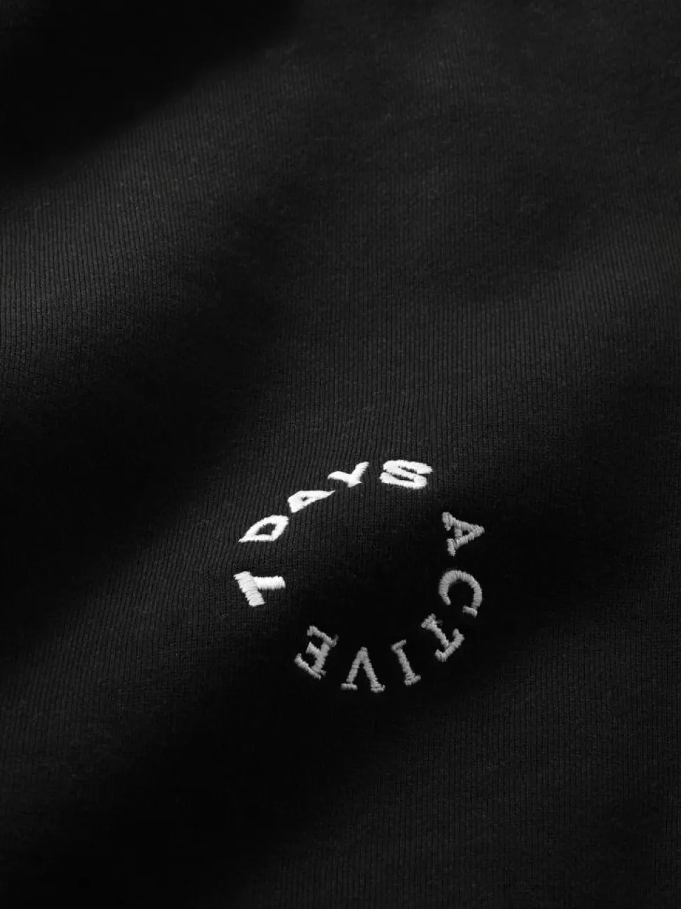 - Hvidt broderi af signatur-cirkellogo på låret