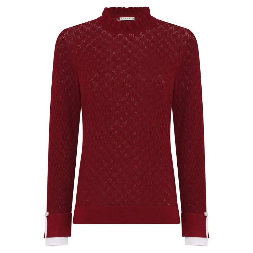 Denne elegant designede striktrøje fra Micha kombinerer klassisk stil med moderne detaljer, hvilket gør den til en alsidig tilføjelse til din garderobe. Trøjen er langærmet, hvilket giver ekstra varme i de køligere måneder, mens den runde hals med flæsekant tilføjer et feminint touch, der gør den velegnet til både hverdagsbrug og mere formelle anledninger.En af de mest iøjnefaldende træk ved denne striktrøje er dens delikate perledetalje, der skaber et sofistikeret udtryk. De ribbede kanter i bunden og ved ærmerne sikrer, at trøjen sidder godt på kroppen og holder formen efter mange ganges brug. Med sin almindelige pasform er denne striktrøje fra Micha behagelig at have på hele dagen og passer ind i enhver stil. Uanset om den styles med et par jeans for et afslappet look eller kombineres med en nederdel til en aften ude, vil denne striktrøje være en uundværlig del af din garderobe.