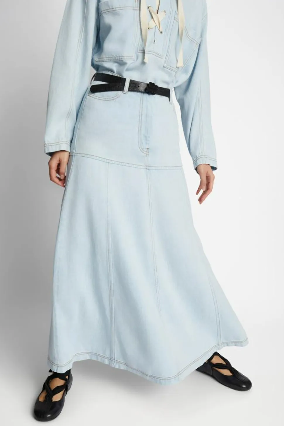 - Lang denimnederdel