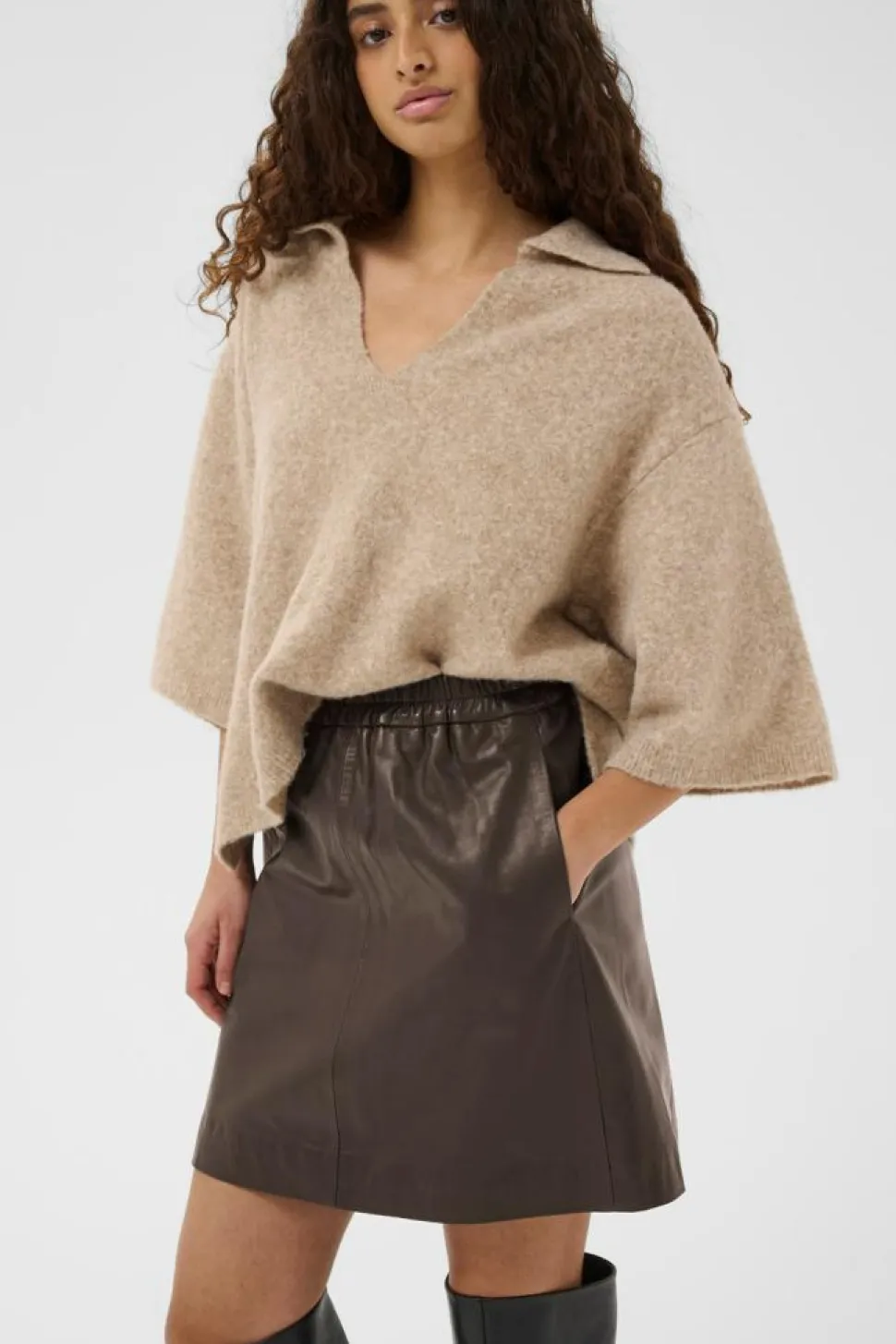 InWear præsenterer den stilfulde WookIW lædernederdel, der med sit moderne design tilføjer et sofistikeret touch til din garderobe. Denne nederdel er fremstillet af 100% læder og udstråler både luksus og kvalitet, hvilket gør den til et must-have for enhver modeentusiast. Den smarte mini-længde giver et ungdommeligt og friskt udtryk, perfekt til både hverdagsbrug og særlige lejligheder, hvor du ønsker at skille dig ud. WookIW lædernederdelen er designet med komfort for øje. Den har en elastik i taljen, som sikrer en behagelig pasform, der følger kroppens bevægelser uden at stramme. De praktiske lommer i siden tilføjer både funktionalitet og et afslappet look, så du nemt kan opbevare småting på farten. Nederdelen er ideel til at kombinere med både casual og mere formelle overdele, hvilket gør det nemt at tilpasse din stil til enhver lejlighed. Med InWear’s lædernederdel får du en alsidig og elegant tilføjelse til enhver garderobe.