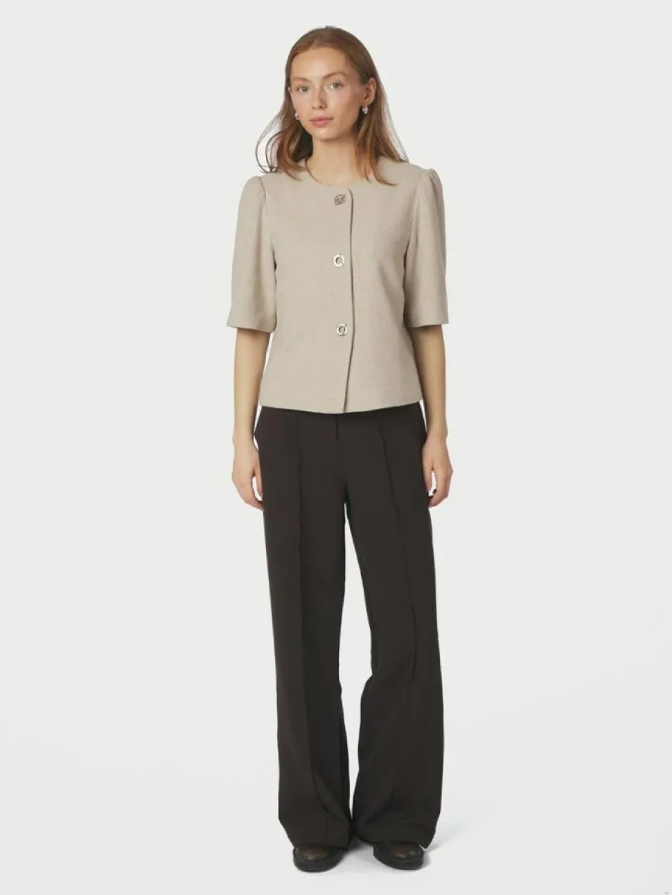 Xanthe Light Herringbone Blazer fra Neo Noir er et stilfuldt valg til enhver garderobe. Denne blazer kombinerer klassisk design med moderne detaljer, der gør den både alsidig og unik. Den kortærmede blazer har en elegant rund hals, som giver et feminint touch, og den er dekoreret med et tidløst sildebensmønster, der tilføjer tekstur og interesse til enhver outfit.Blazeren er udstyret med en diskret hægtelukning, som gør det nemt at bære den både åben og lukket, alt efter lejligheden. En særlig detalje ved denne blazer er pufeffekten ved skuldrene, som skaber en flot silhuet og tilføjer en ekstra dimension til designet. Med sin almindelige pasform sikrer Xanthe Light Herringbone Blazer komfort og bevægelsesfrihed, hvilket gør den ideel til både hverdag og festlige anledninger. Perfekt til at skabe et sofistikeret look, kan denne blazer fra Neo Noir let styles med både formelle og afslappede elementer i din garderobe.